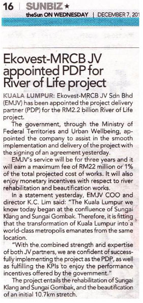 Ekovest – MRCB JV Appointed PDP For River Of Life Project